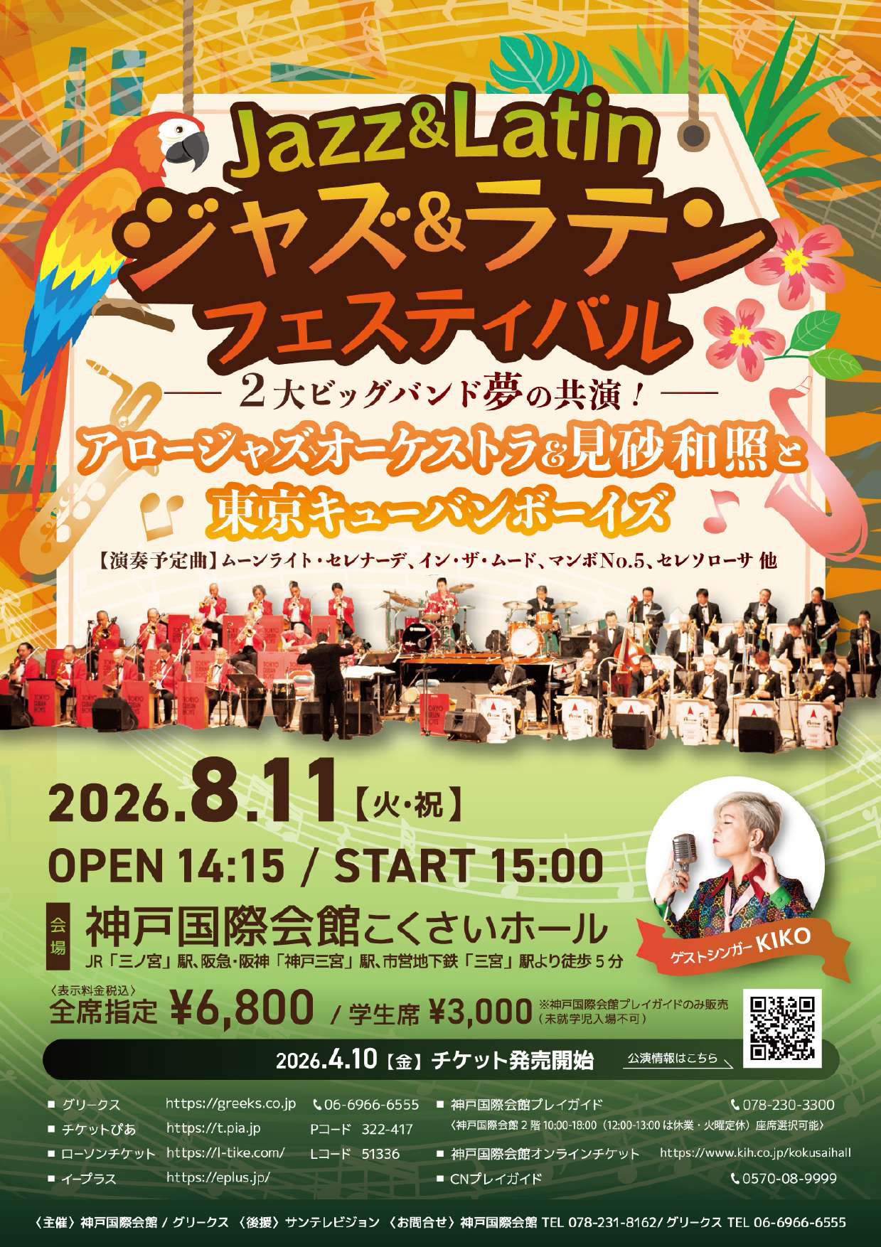 JAZZ!LATIN FESTIVAL8月11日 15:00開演 神戸国際会館こくさいホール ¥6,800 学生¥3,000 |